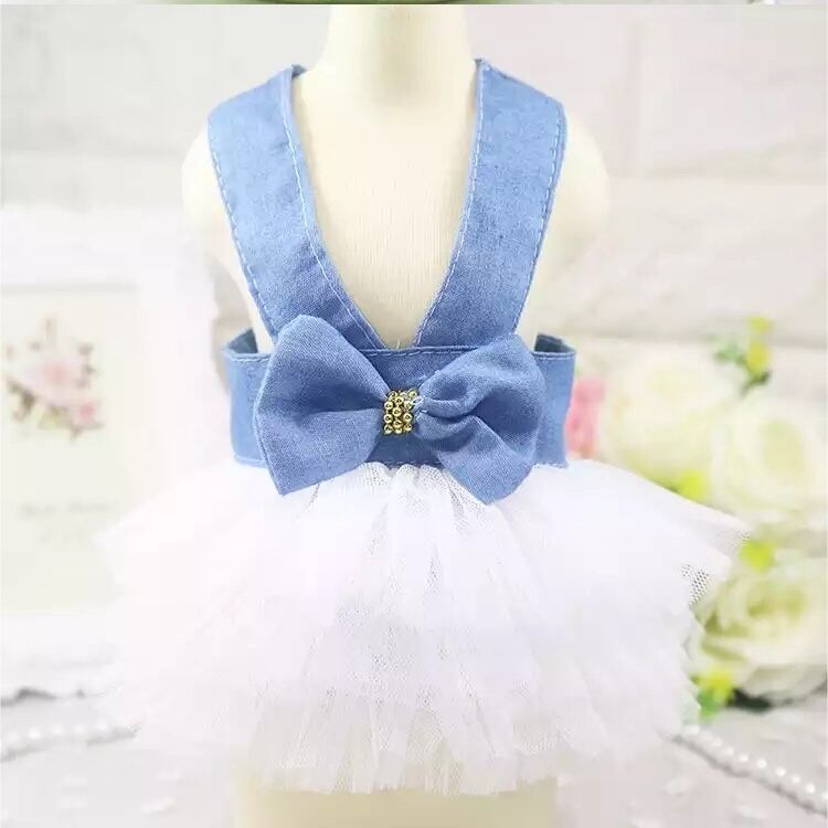 犬服 猫服 ペット服 春夏 肩ひも付きチュチュ デニム白 ホワイト:XS~XXL