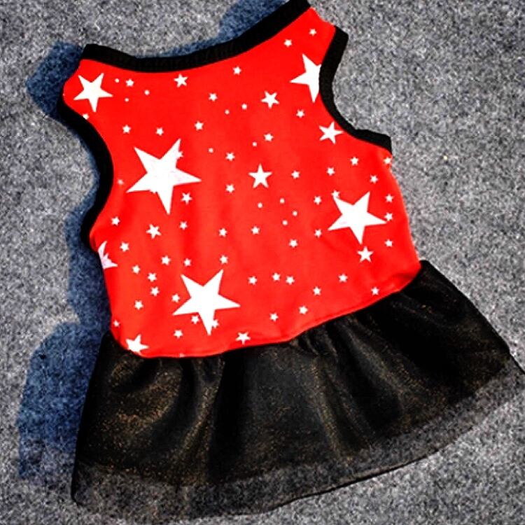 犬服 猫服 ペット服 春夏 キラキラ ワンピース 赤星×黒チュチュ:XS.M