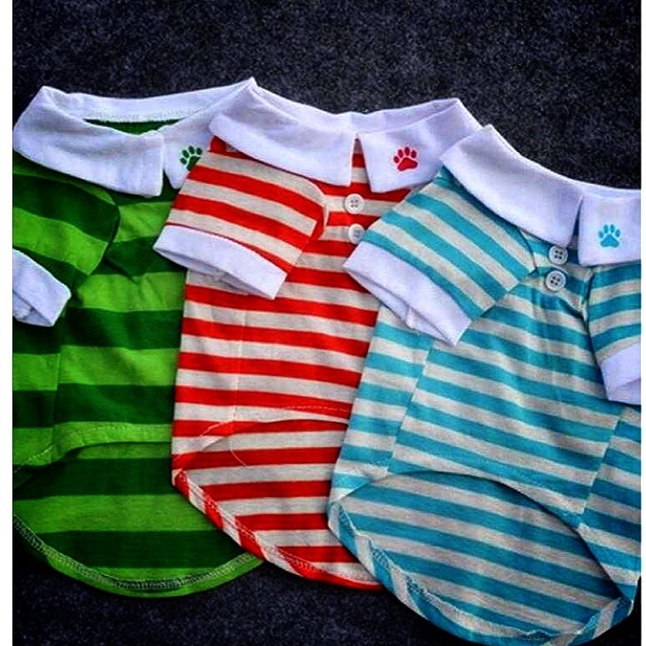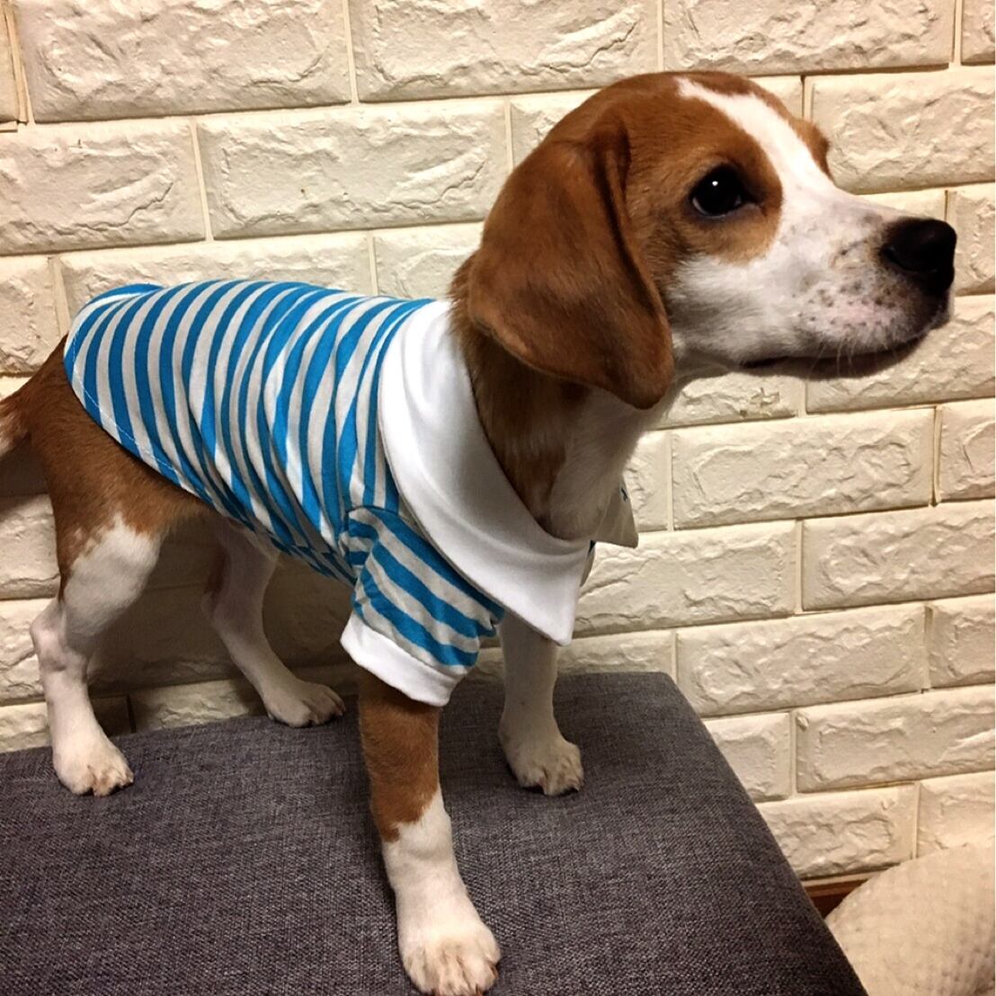 犬服 猫服 ペット服 春夏 ポロ風 ホワイトボーダーTシャツ:XS