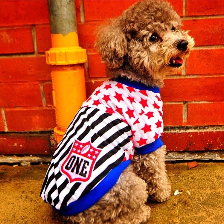 犬服 猫服 ペット服 春夏 星条黒ボーダー Tシャツ:XS.S