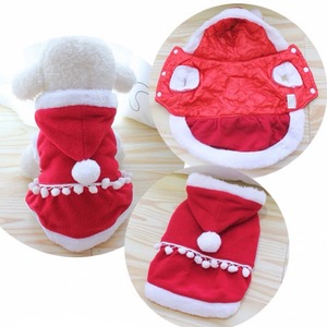 犬服 猫服 ペット服 超小型 パピー犬 フリースパーカーワンピース クリスマスワンピ:3XS.XXS