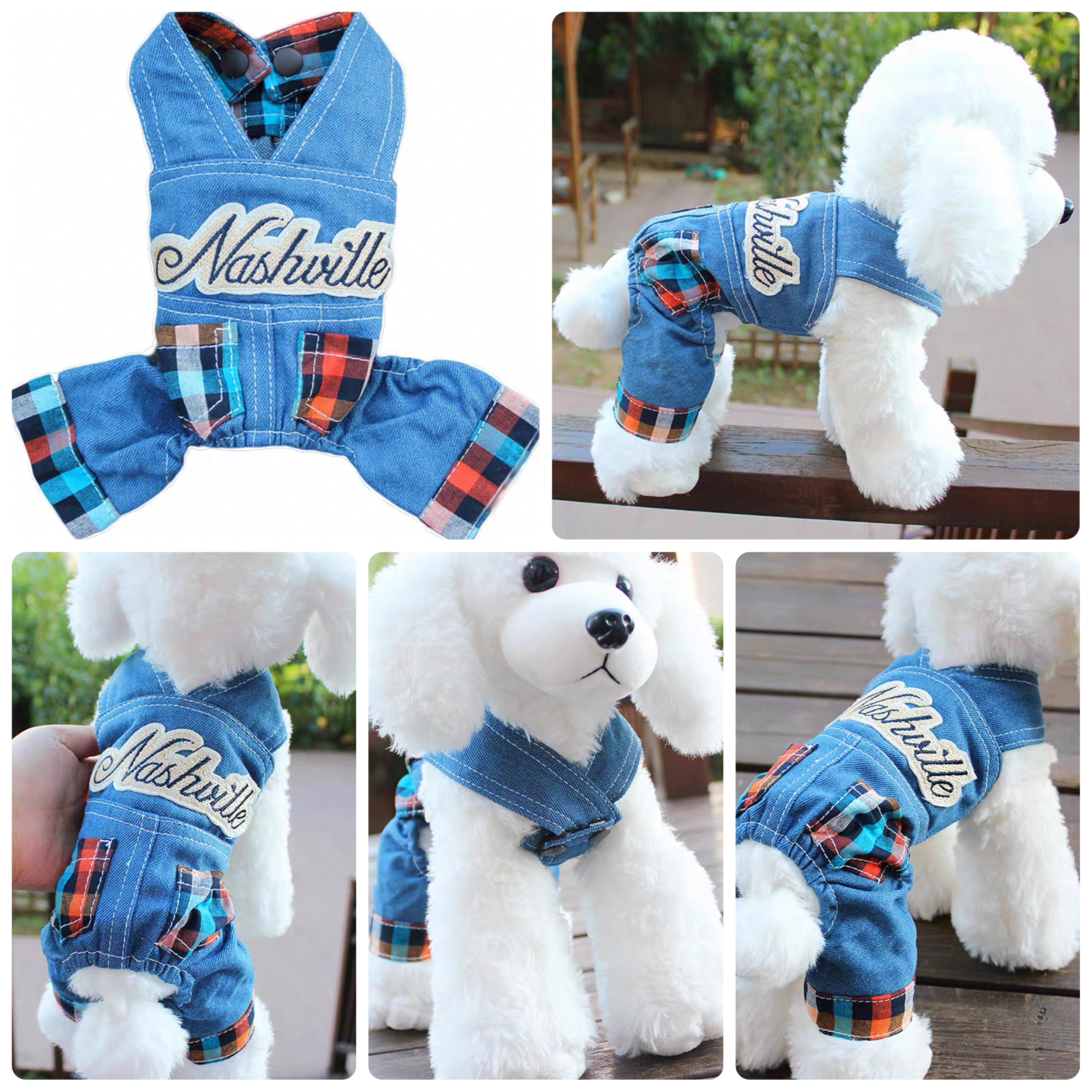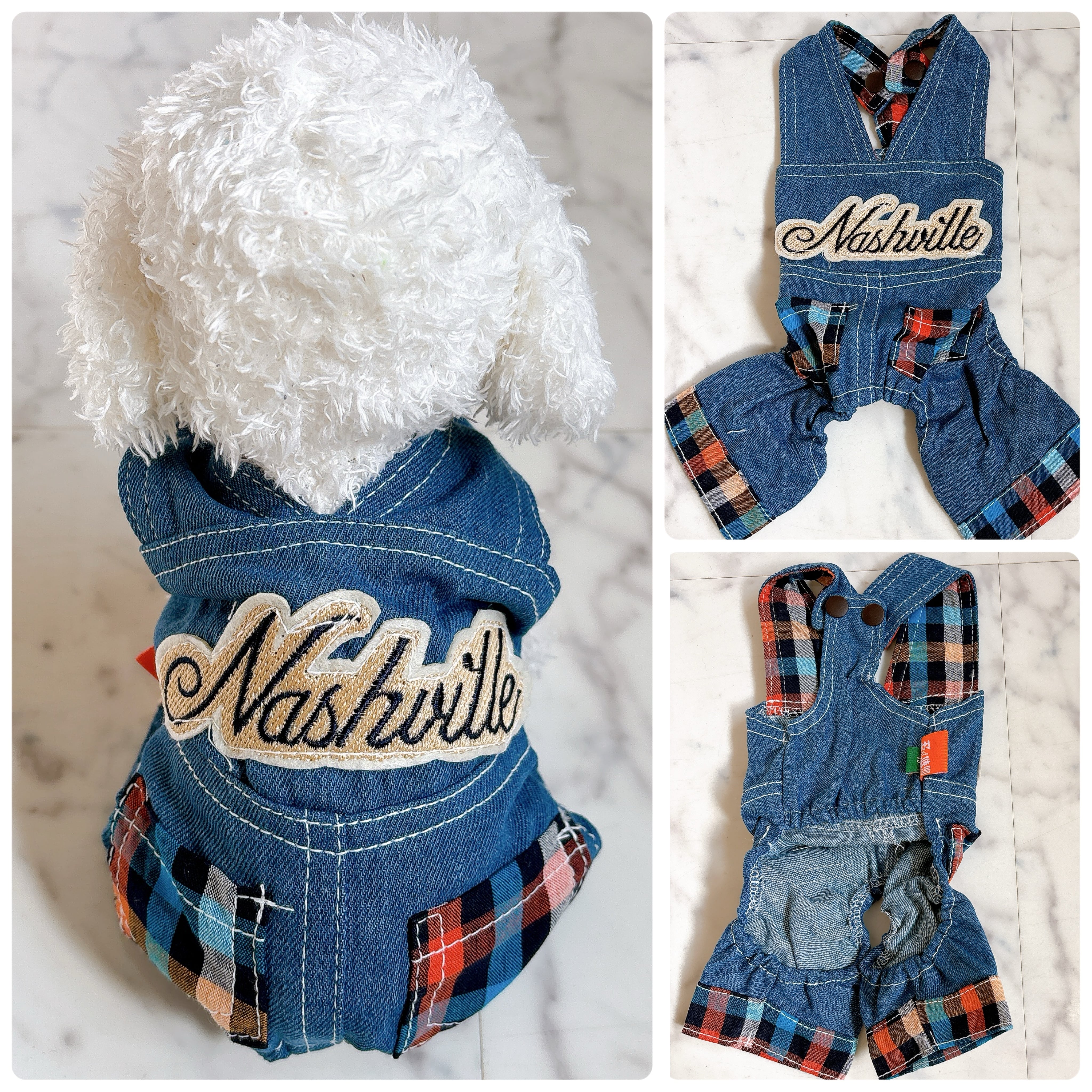 犬服 猫服 ペット服 超小型 パピー犬 ダンガリーチェック切り替えロンパース:XXS