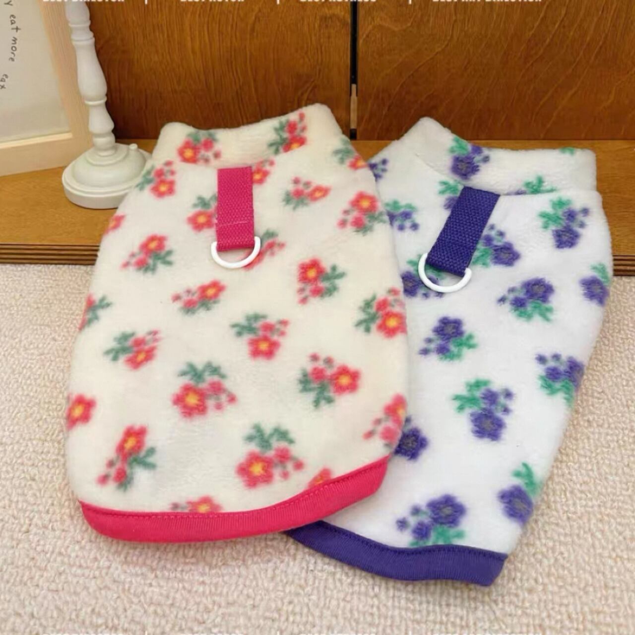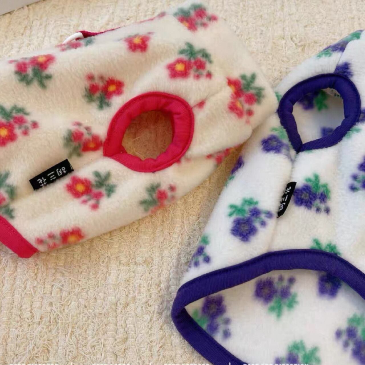 犬服 ペット服 超小型 パピー犬 秋冬 フラワーフリースタンク:XXS