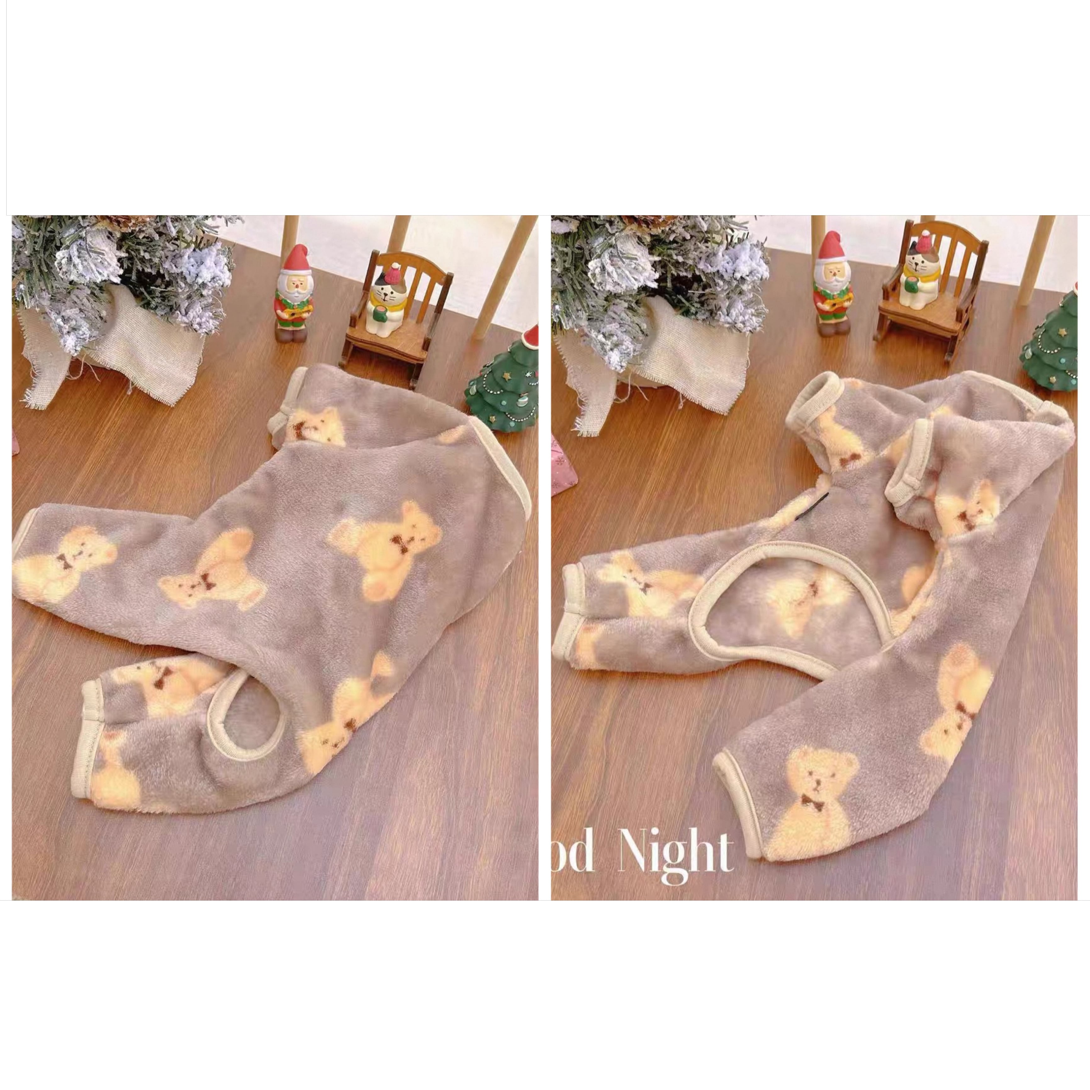犬服 猫服 ペット服 超小型 パピー犬 クマフリースロンパース:XXS