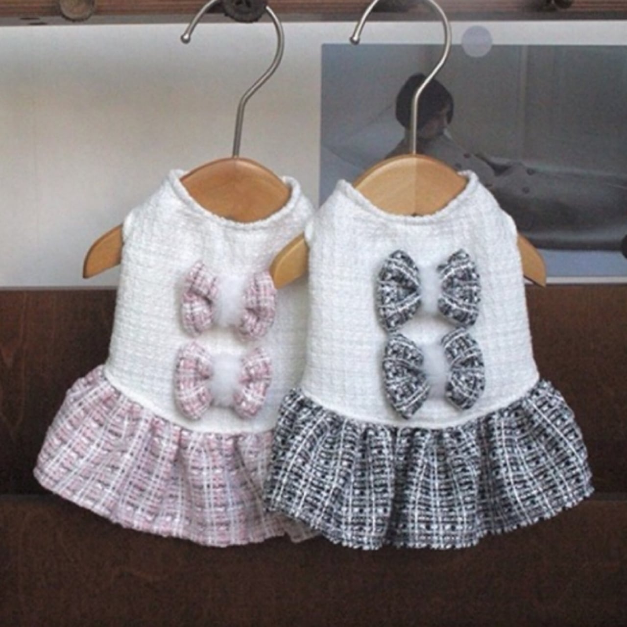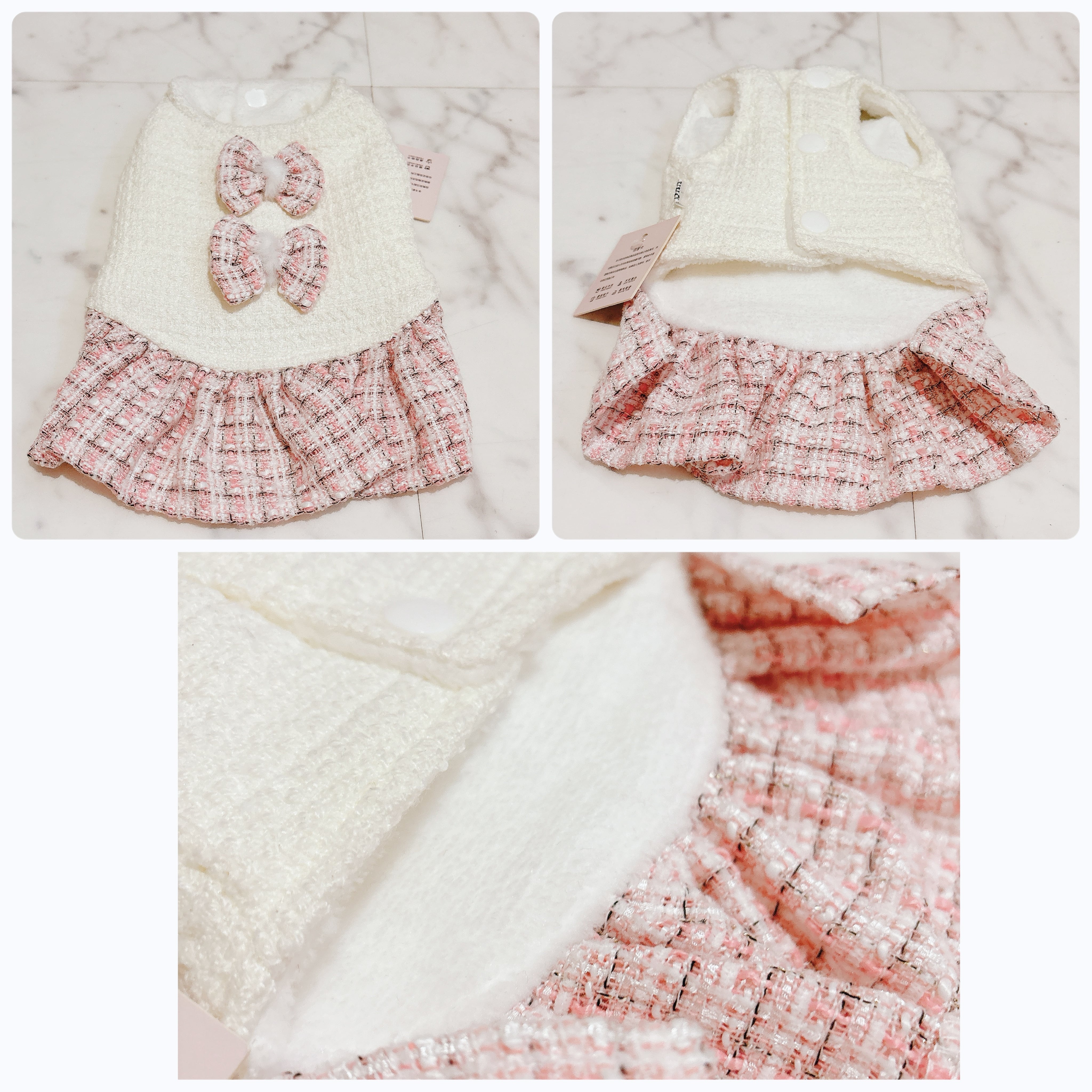 犬服 猫服 ペット服 超小型 パピー犬 ツイードワンピース:3XS.XXS