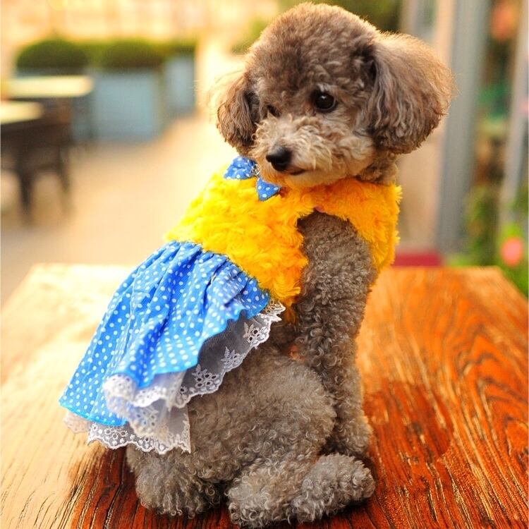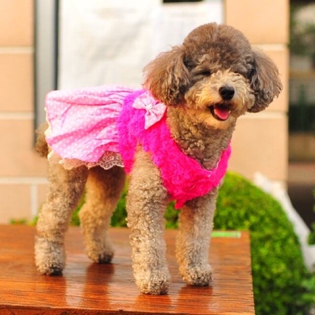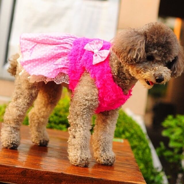 犬服 猫服 ペット服 ボア ドットリボン ワンピース:M.XL.XXL