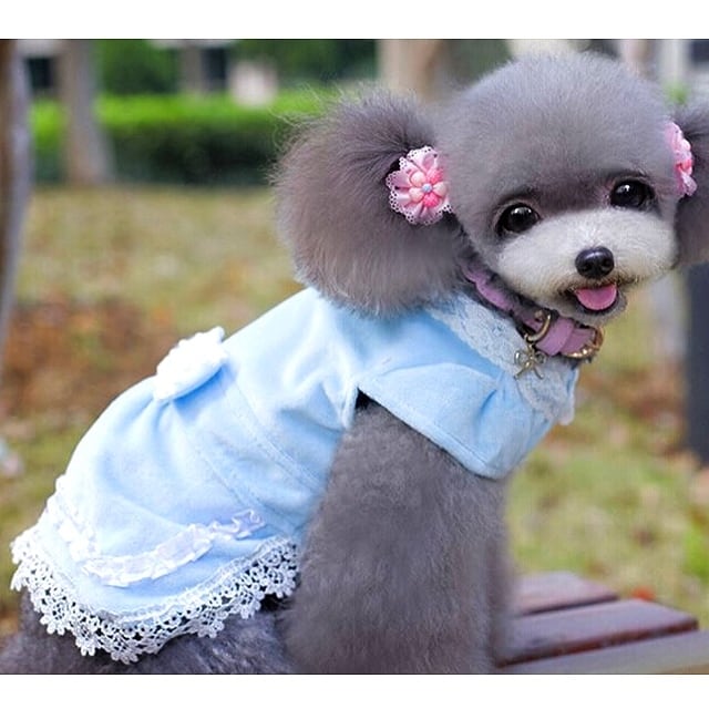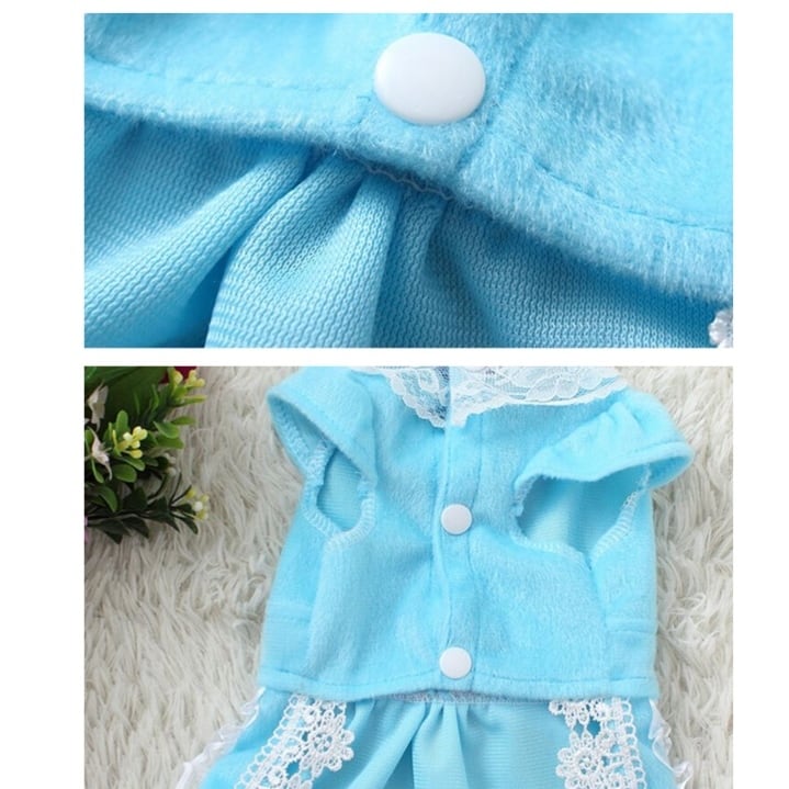 犬服 猫服 ペット服 パールリボンレースワンピース ブルー:XS.XXL