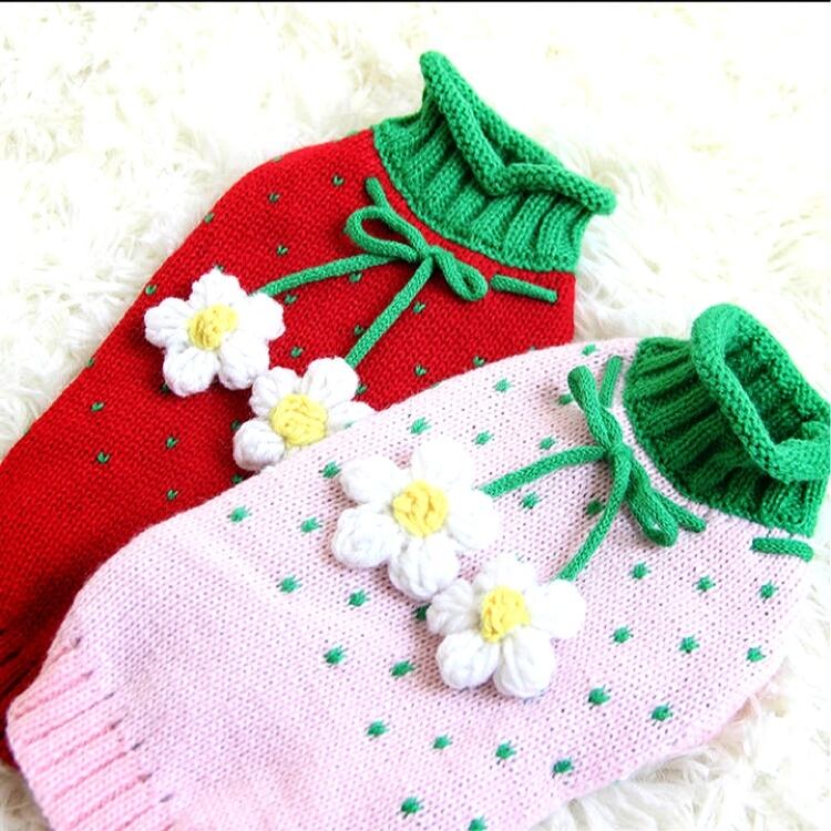 犬服 猫服 ペット服 お花モチーフ ドットセーター ピンク:XS.M.XL