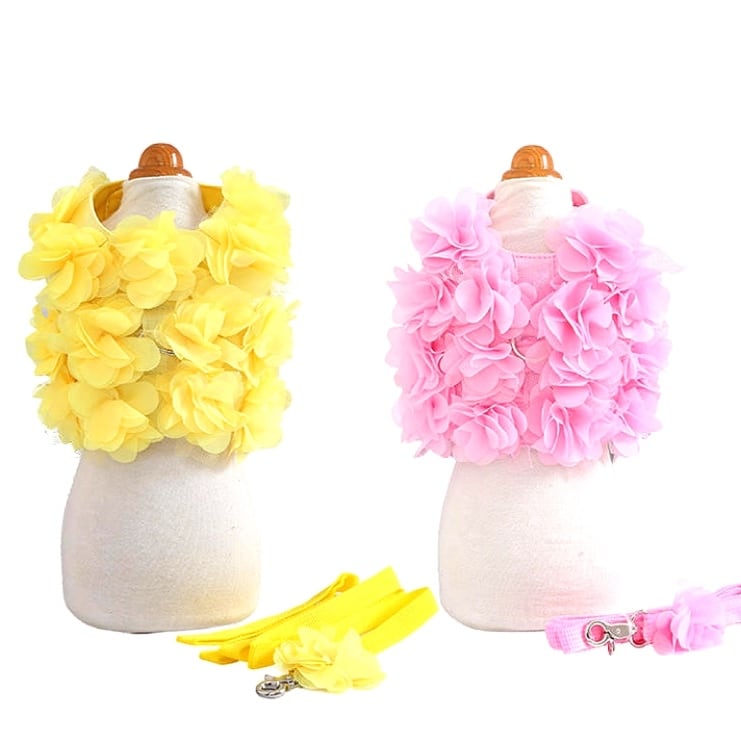 ハーネス リード 首輪♡ 犬 猫 ペット フラワー ピンク: S〜XL