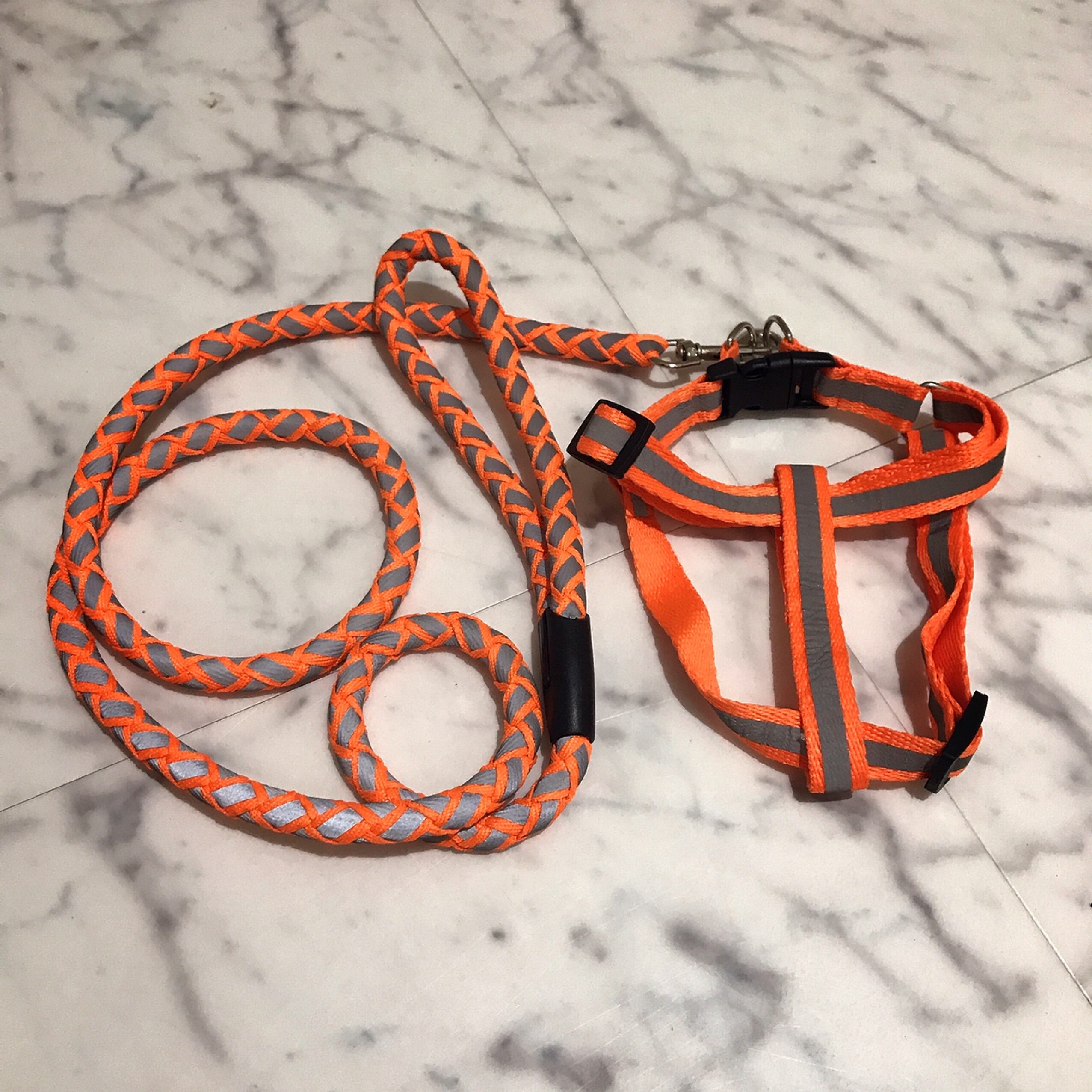 ハーネス リード 首輪♡ 犬 猫 ペット 反射付きハーネス/オレンジS.L