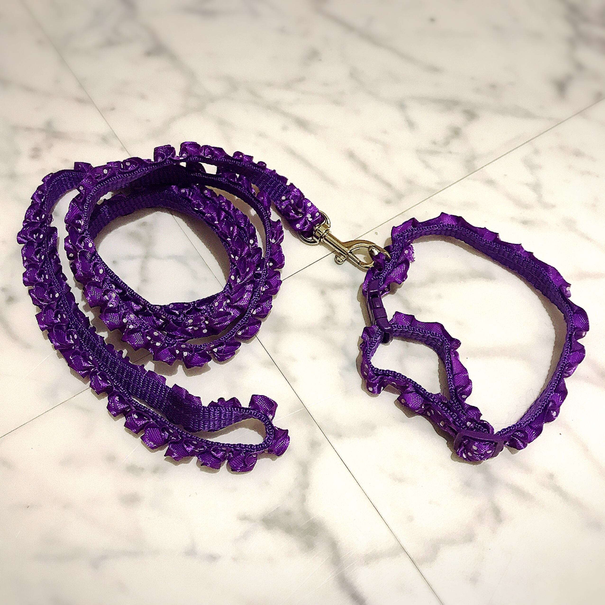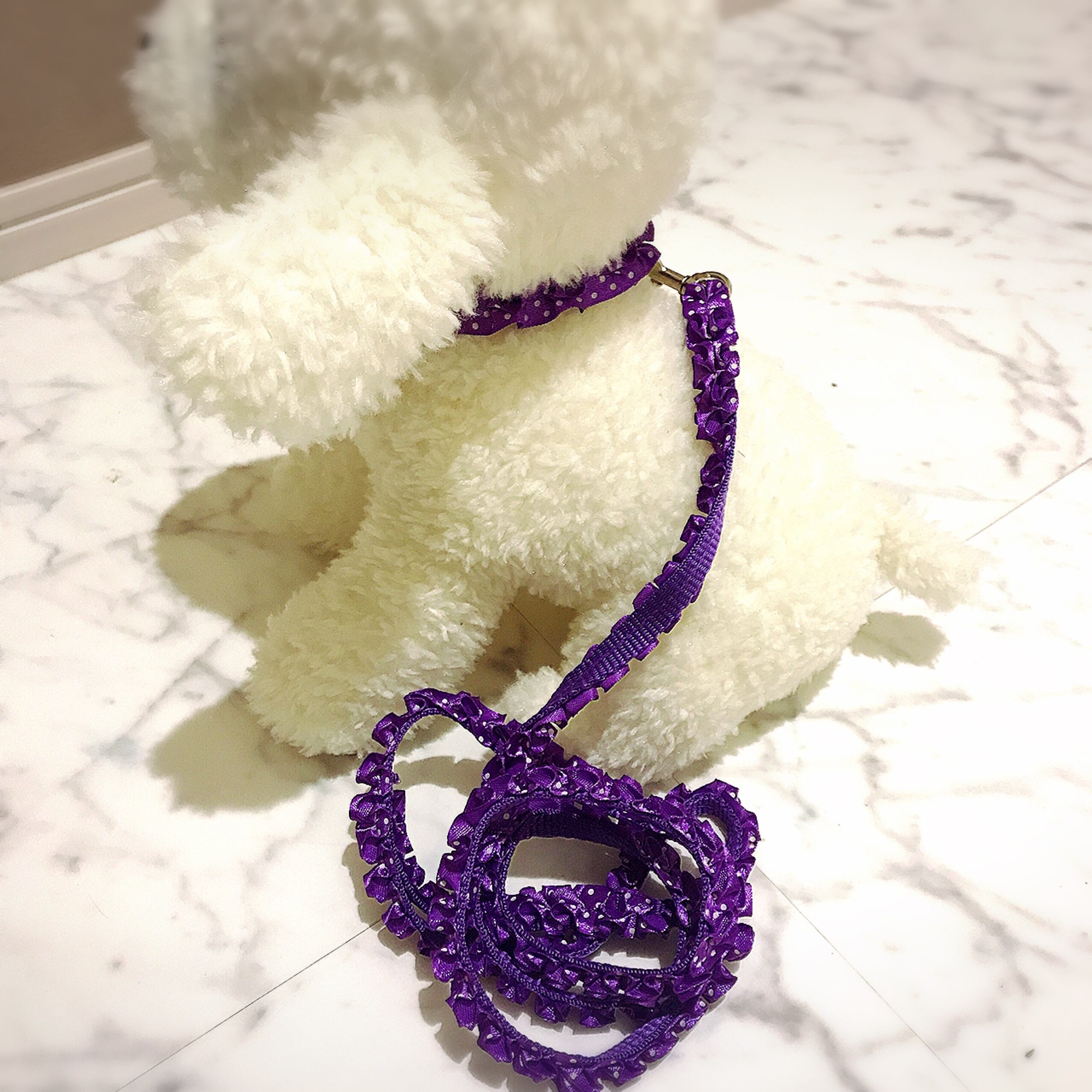首輪 リード ハーネス♡ 犬 猫 ペット クシュクシュドット 濃パープル:S