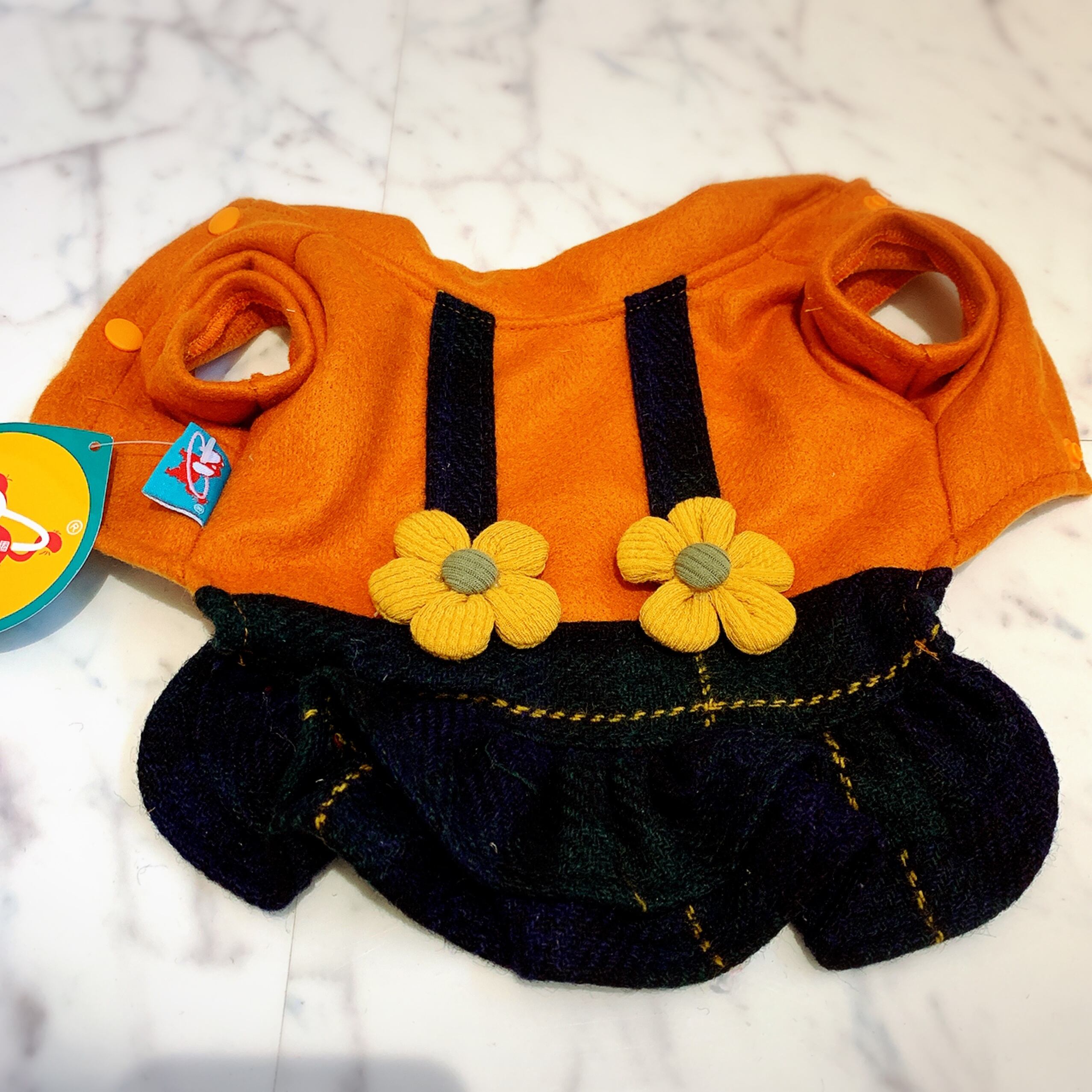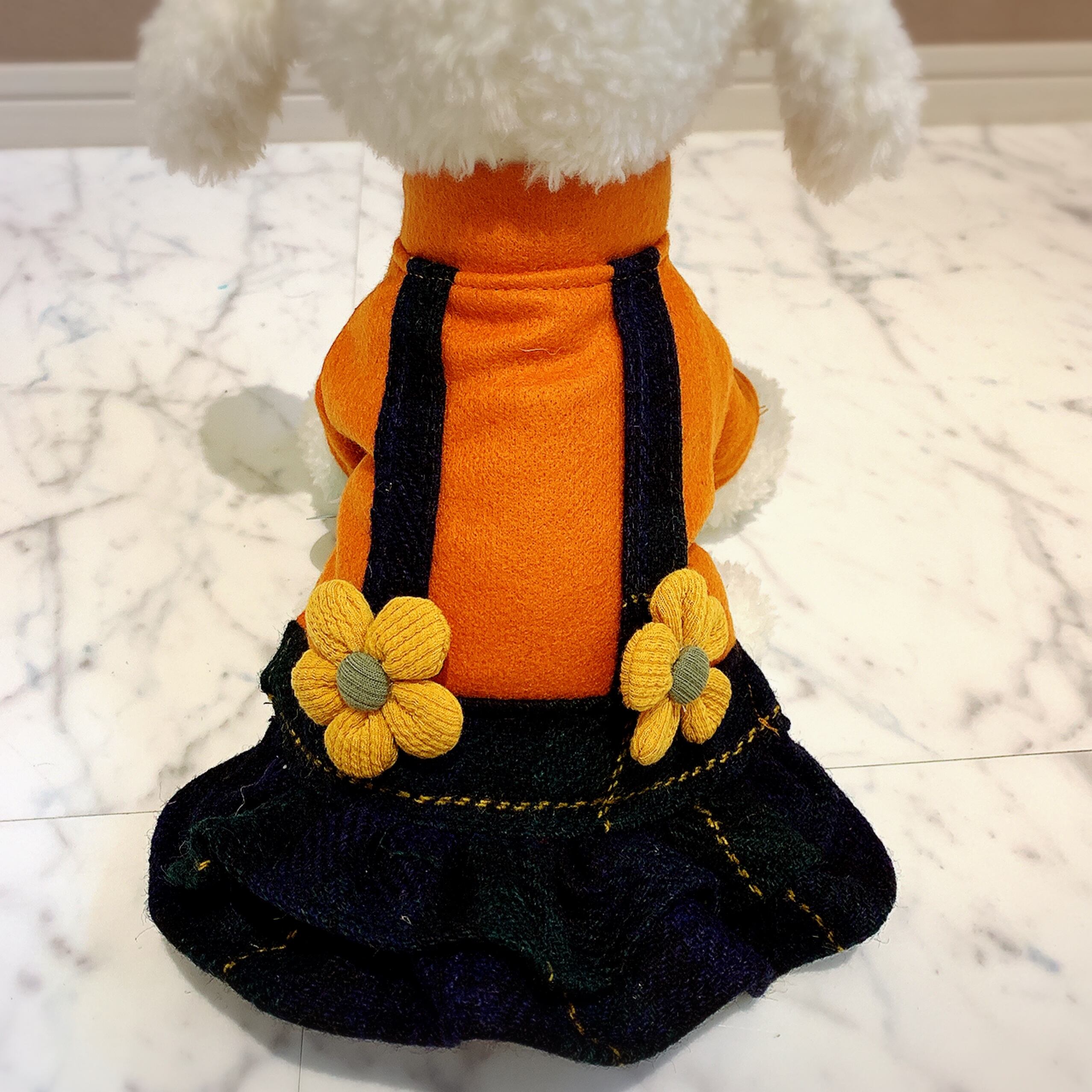 犬服 猫服 ペット服 オータムフラワー切り替えチェックワンピース:XS〜XL