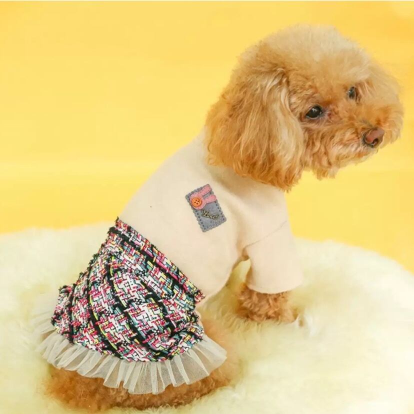 犬服 猫服 ペット服 ツイード切り替えレース ワンピース:XS〜XL