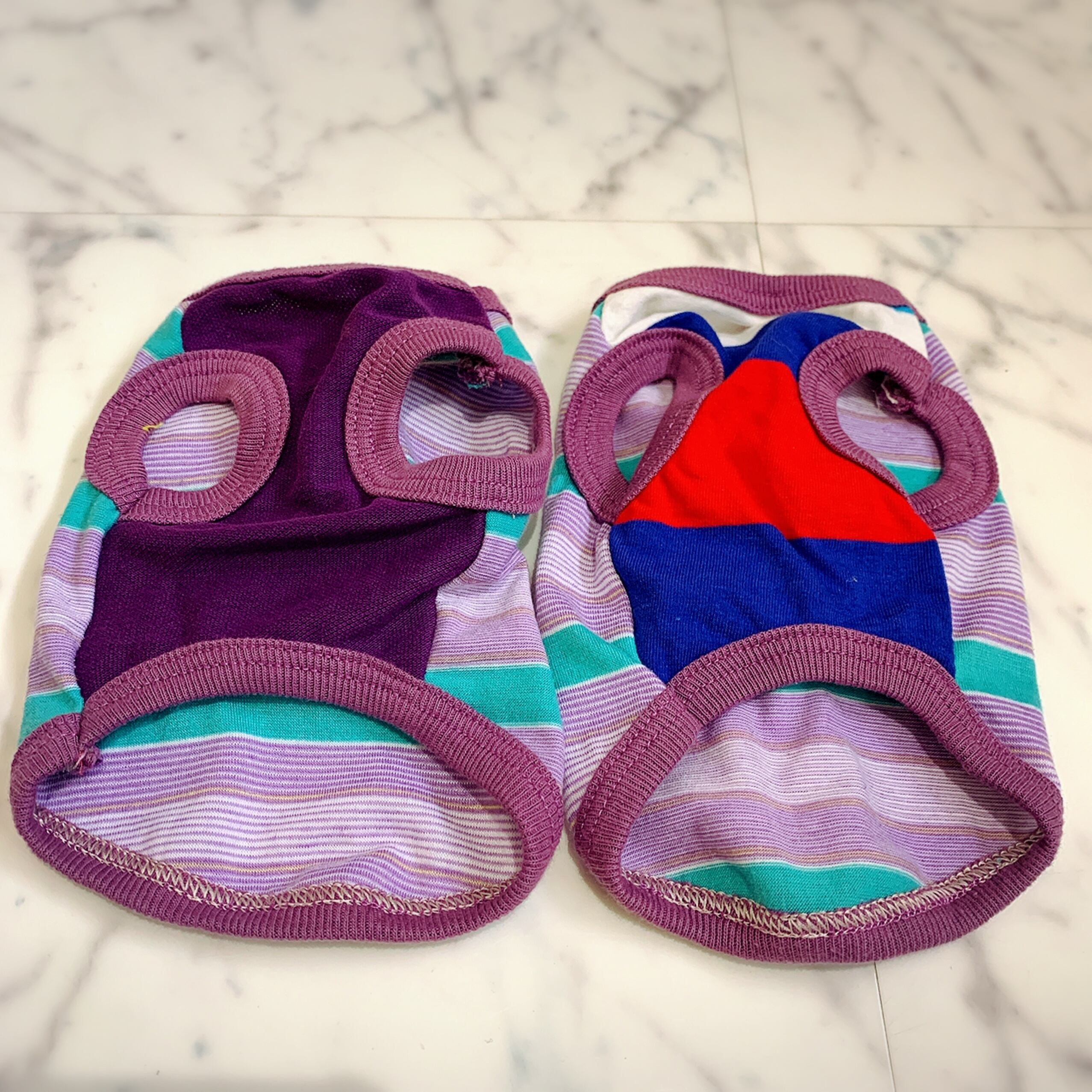 犬服 猫服 ペット服 超小型 パピー犬 春夏秋 紫系ボーダータンクバンビ:XXS