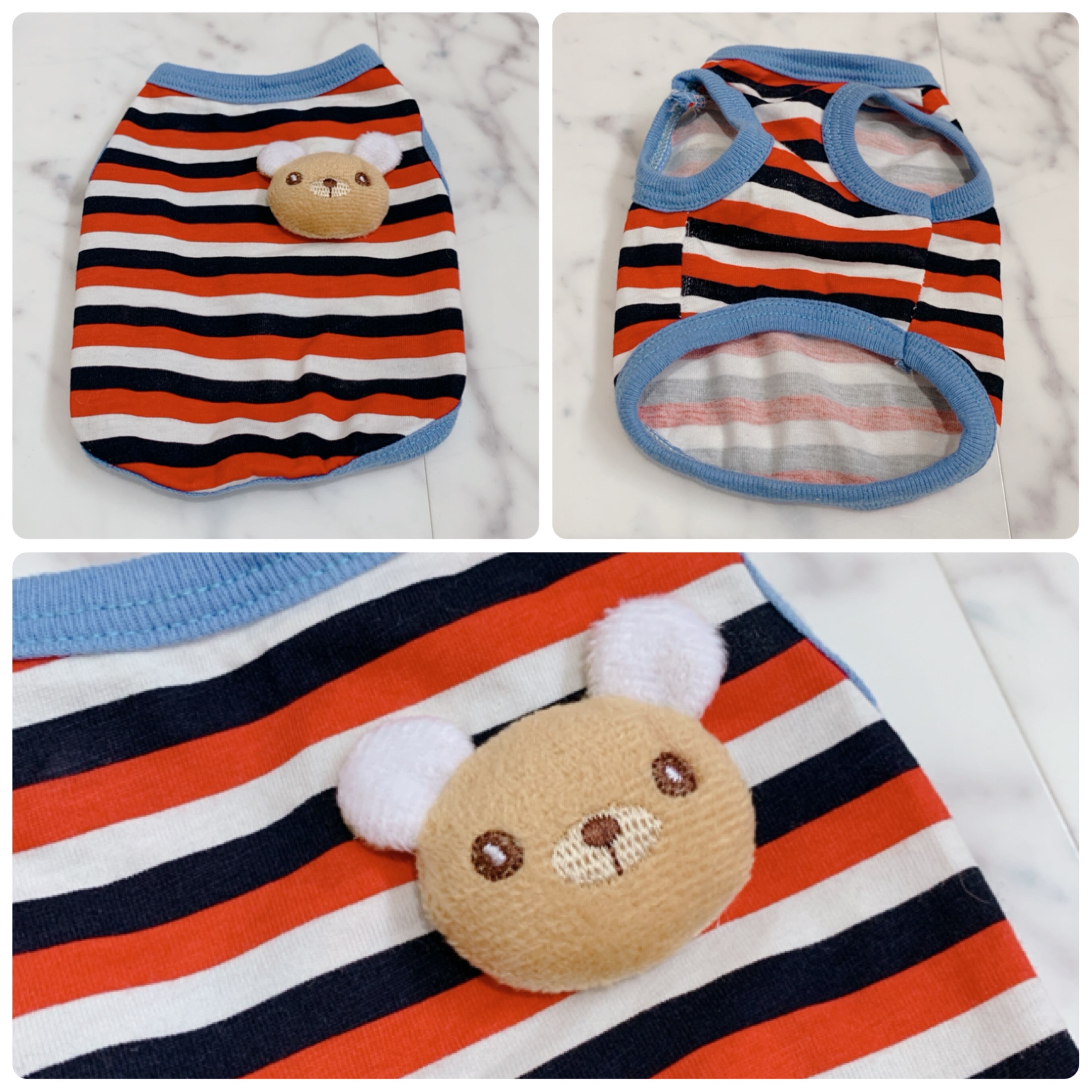 犬服 猫服 ペット服 超小型 パピー犬 春夏秋 マルチボーダーくまタンク:XXS