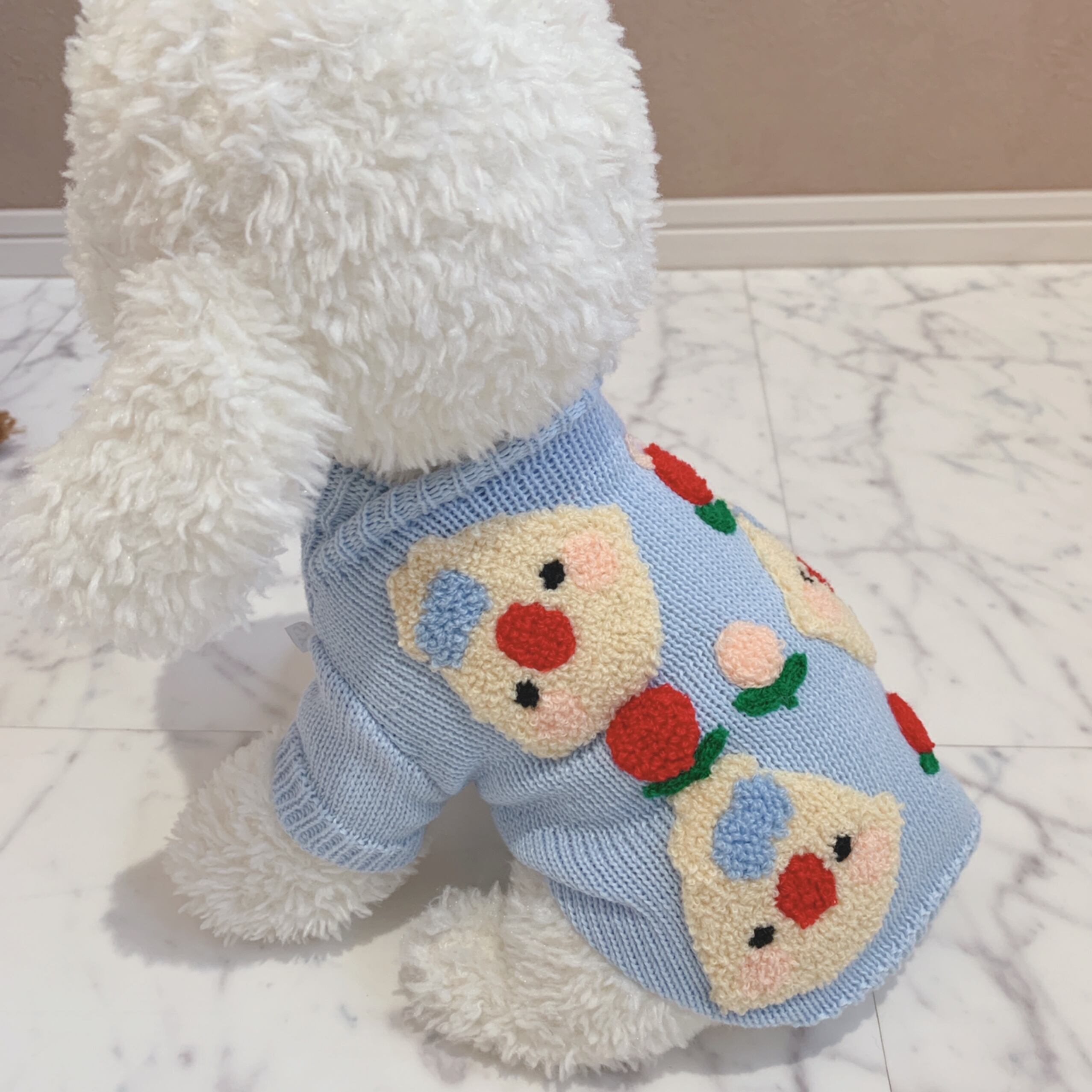 犬服 猫服 ペット服 ひよこアップリケ 薄セーター ブルー:XS