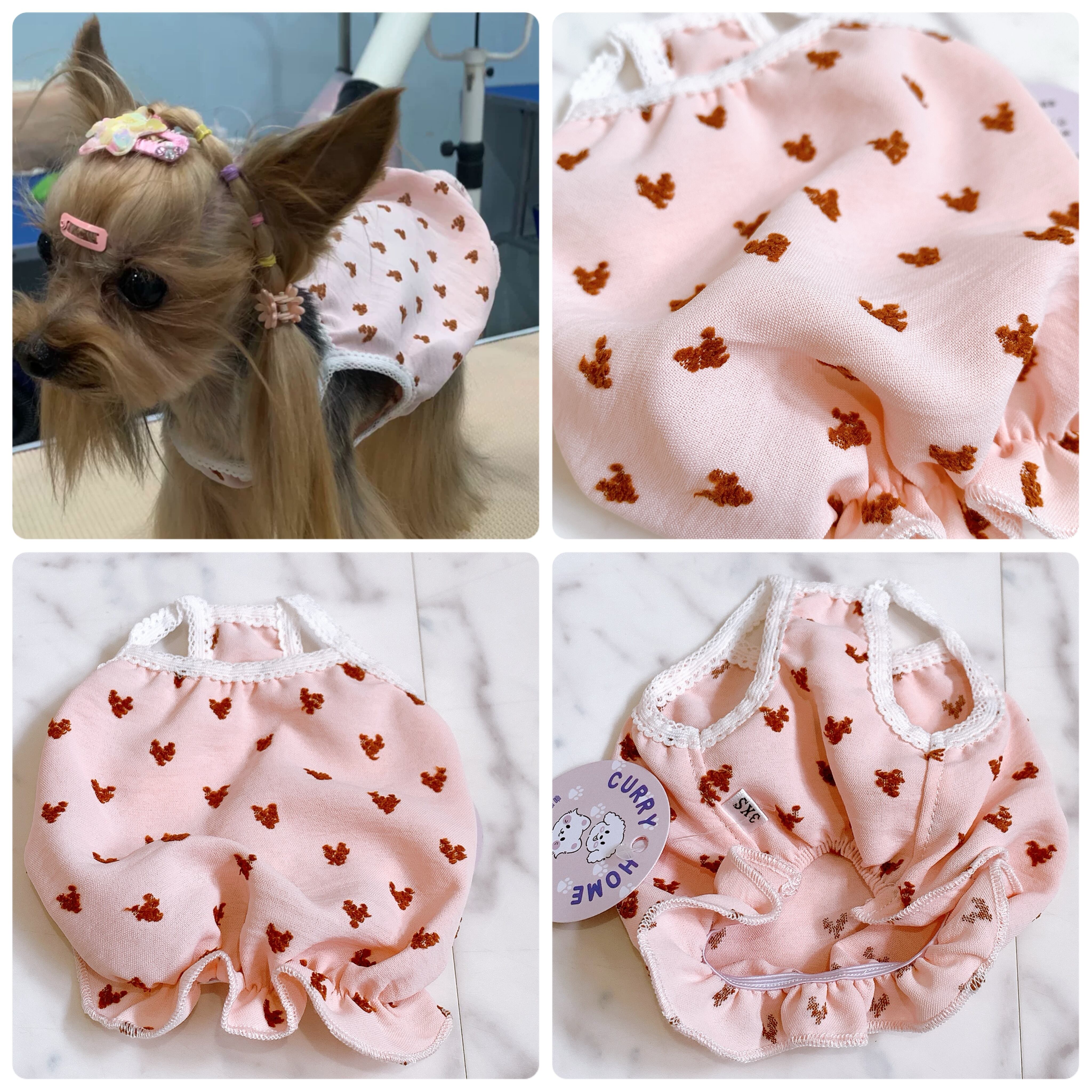 犬服 猫服 ペット服 超小型パピー犬 春夏用 ハートバルーンワンピース:3XS.XXS