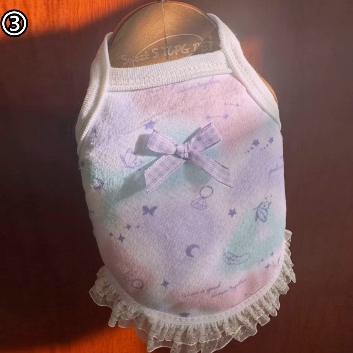犬服 猫服 ペット服 超小型 パピー犬 裾フリルあったか肩ひもワンピ:3XS.XXS