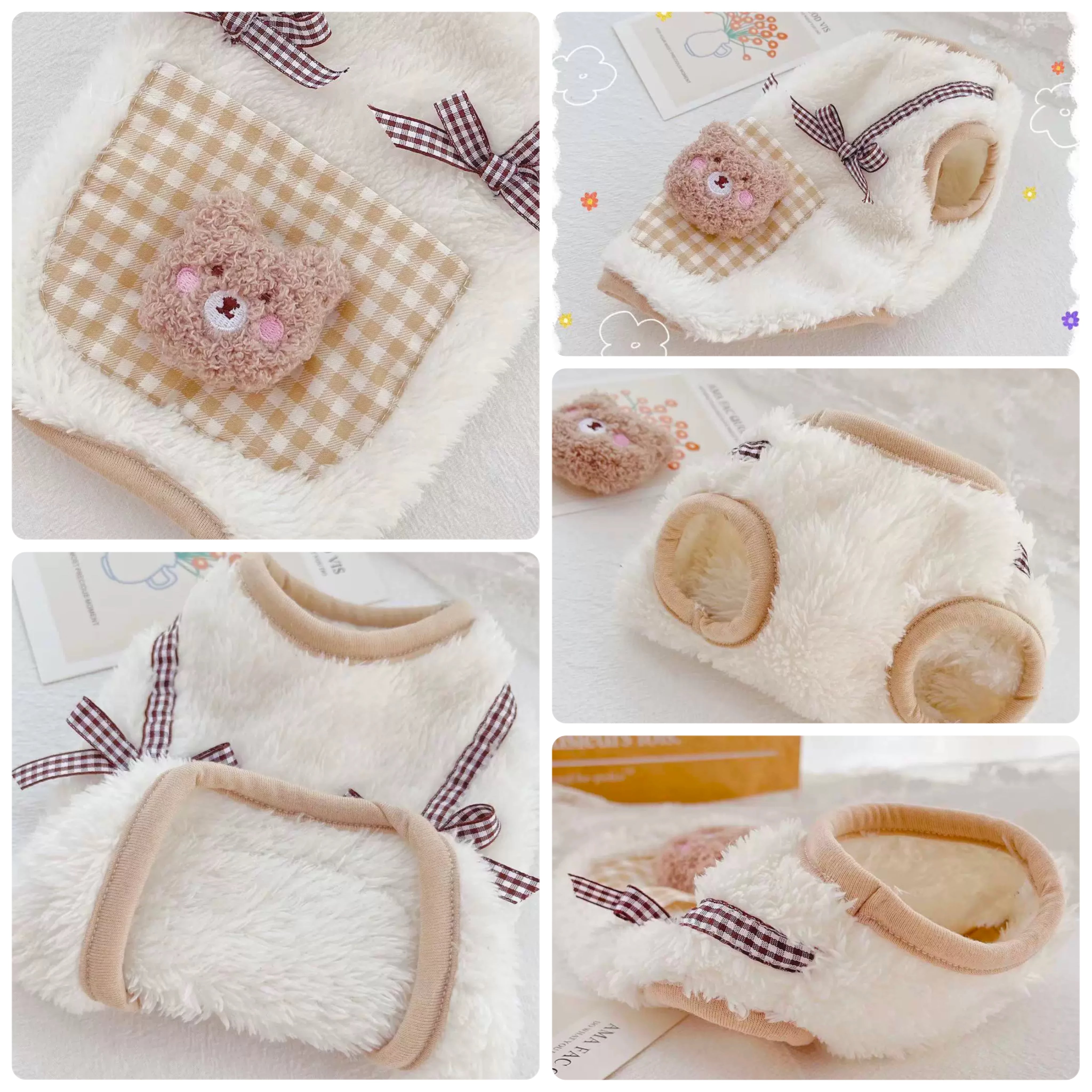犬服 ペット服 超小型 パピー犬 秋冬 くまポッケフリースタンク:XXS